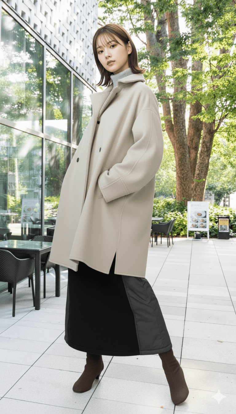 【風をまとう軽さ】上質ビーバー素材が織りなす、ドラマチックなテントシルエットコート