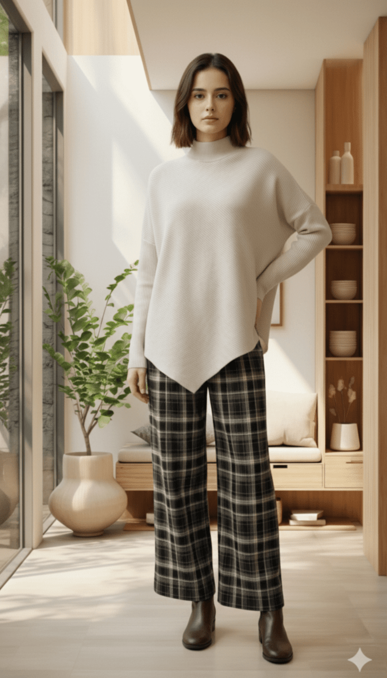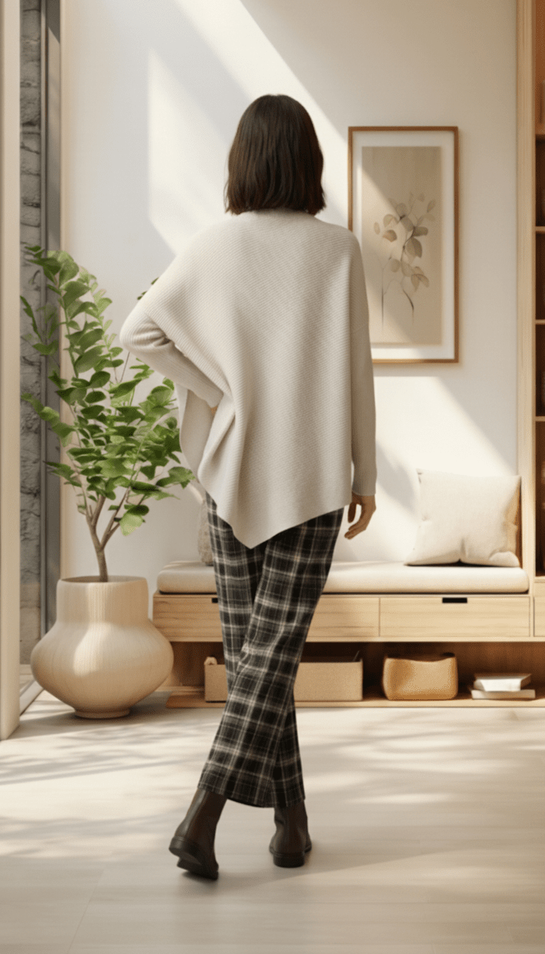 【斜め編みが効く】ゆったり×スリム袖でメリハリ。大人のためのバイアスデザインニット